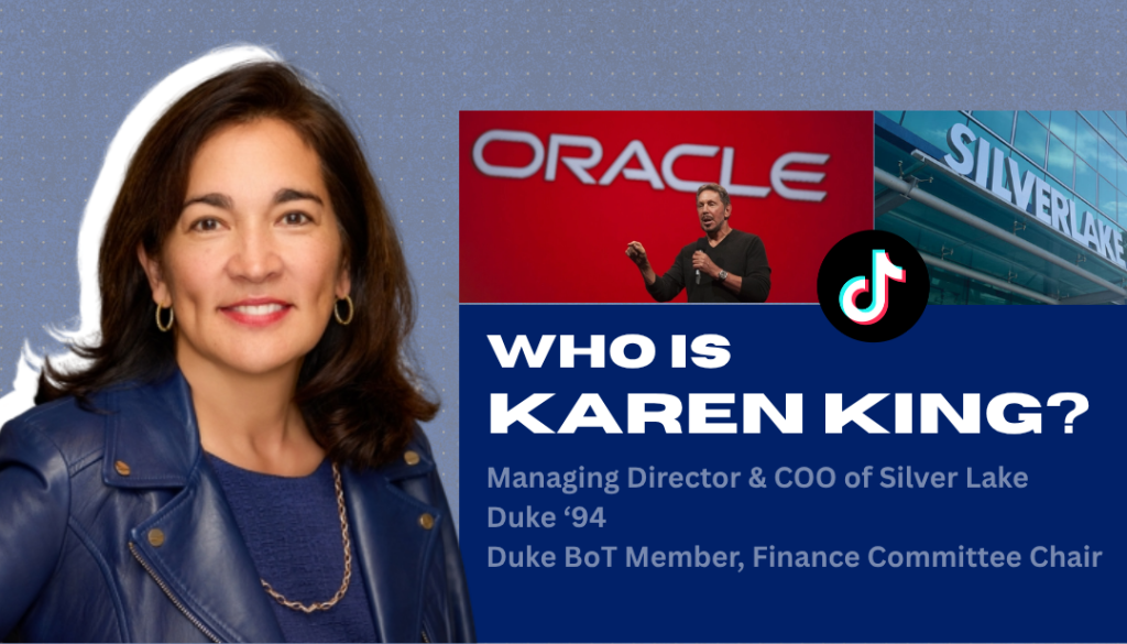 Karen M. King is the Managing Director and COO of Silver Lake, a private equity firm focused on technology and technology-enabled investments. Together with Zionist mega-donor Larry Ellison and his company Oracle, Silver Lake struck a deal to acquire a major share of the new U.S. company that will control TikTok.